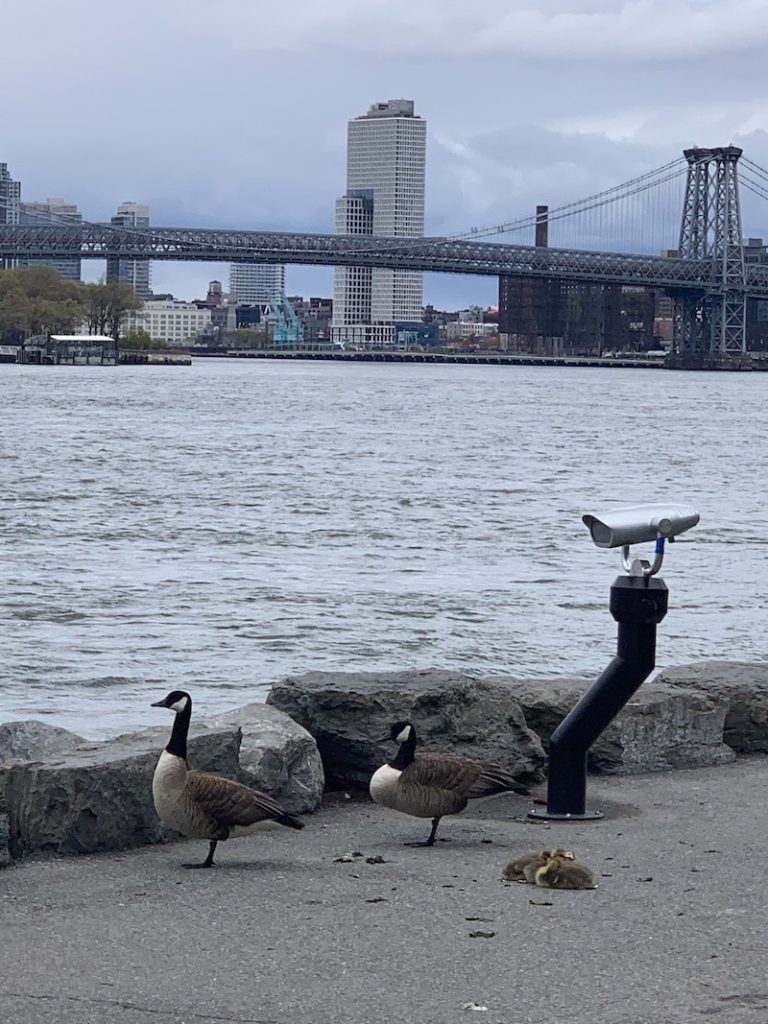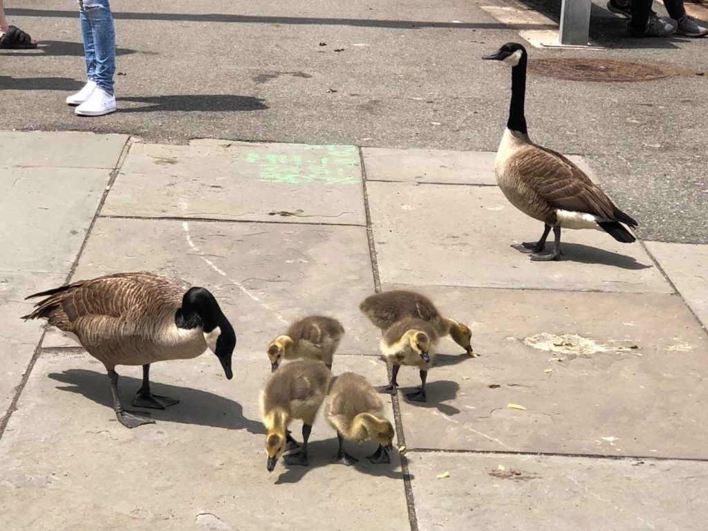 A family of Canadian geese with five babies has taken over the DUMBO section of Brooklyn Bridge Park during the last few weeks. Tell your kids more about them when you encounter these cuties next in DUMBO: