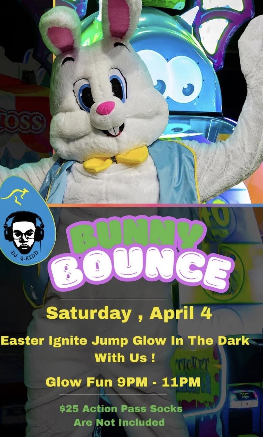Jump with the Easter bunny at Launch Brooklyn’s glow in the dark party!