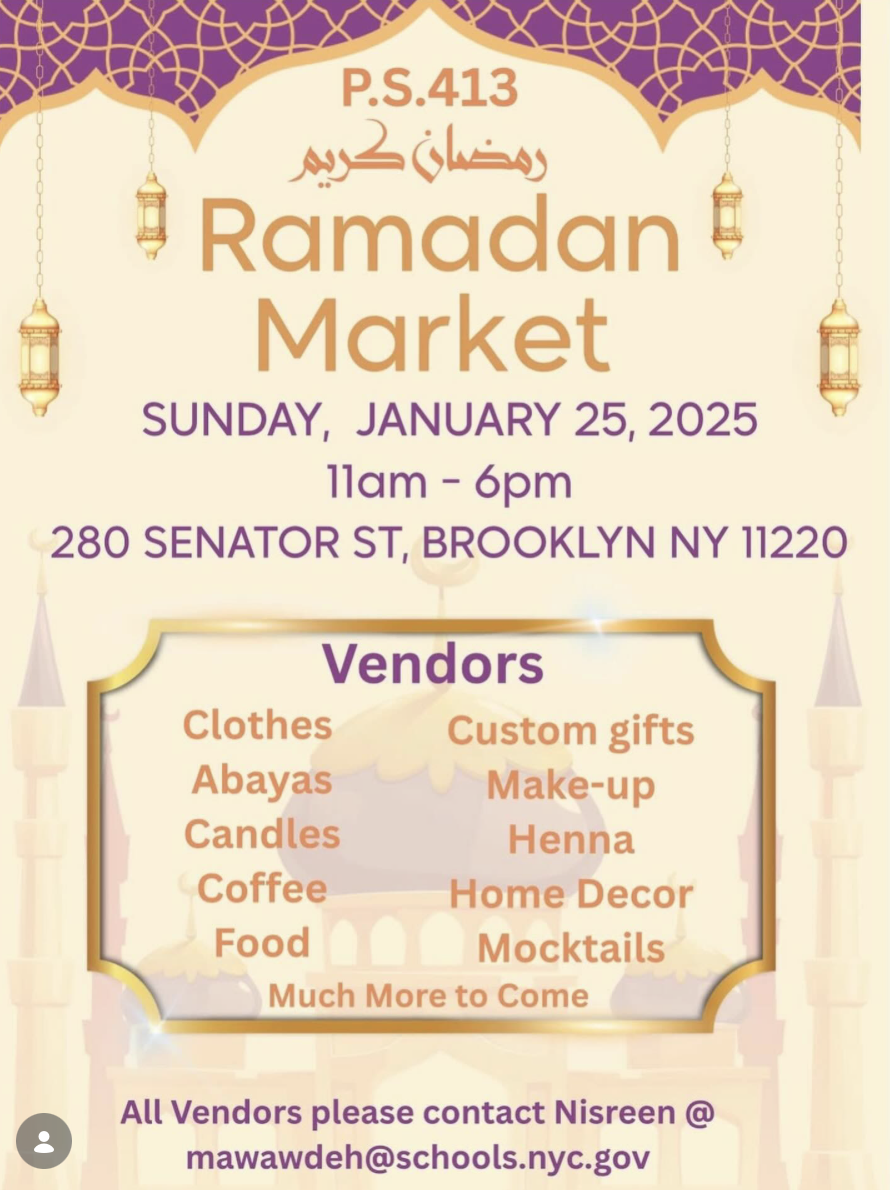 Stop by PS 413’s Ramadan Market for clothes, candles, coffee, food, gifts, henna, and more!