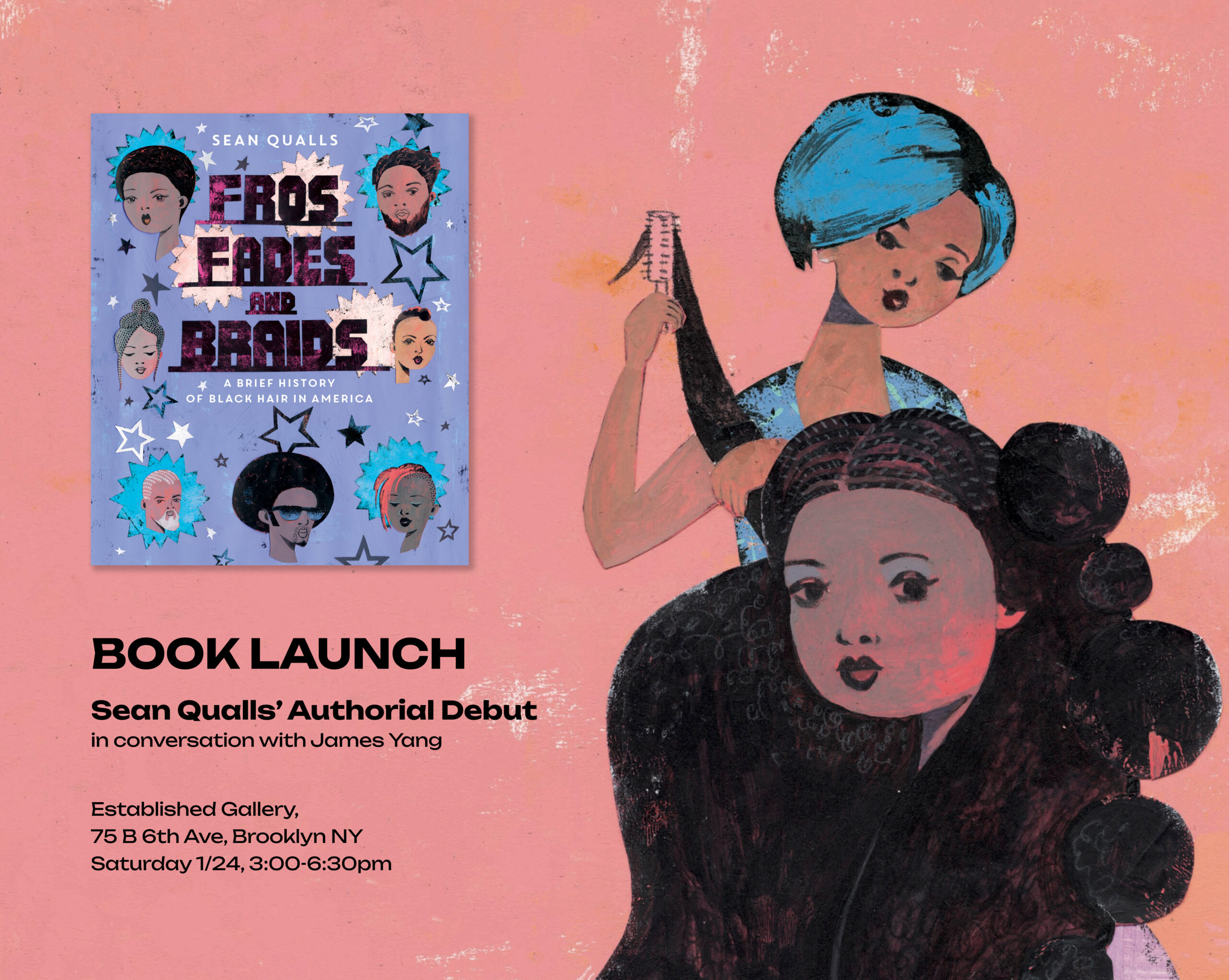 Author Sean Qualls will host  a Book Launch Party for Fros, Fades, and Braids: A Brief History of Black Hair in America, which is being released this week. The party will be at Established Gallery on Flatbush Ave.