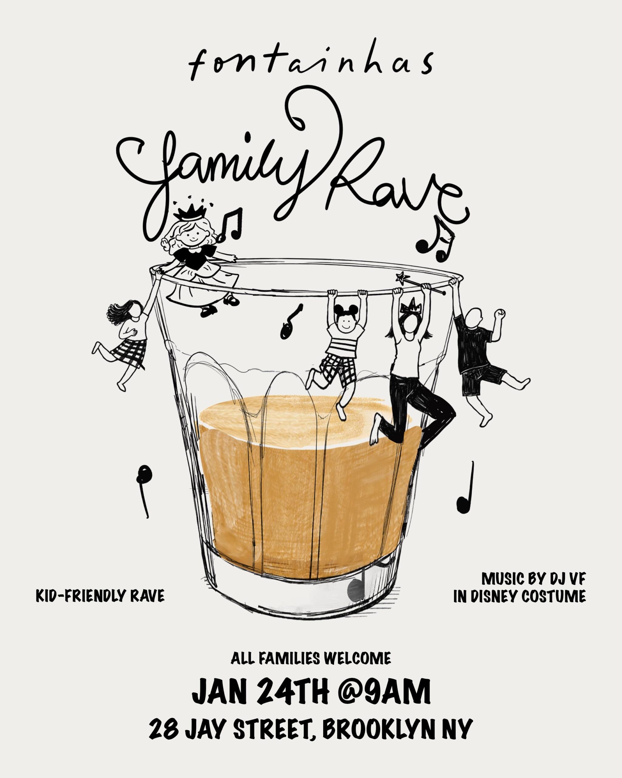 Join for a kid-friendly family rave with music at a safe volume, room to dance, and DJ VF spinning feel-good music (in a Disney princess costume). Coffee and food will be available for parents while kids do their thing.