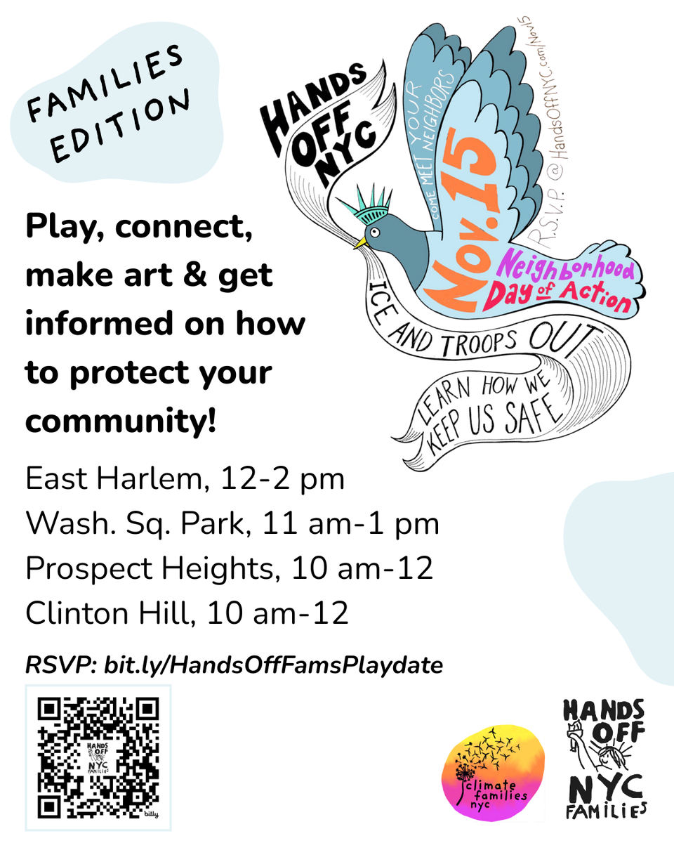 Come play, make art, snack, connect with other families taking action for NYC kids, and get resources for protecting kids, families, and school communities from federal escalation.