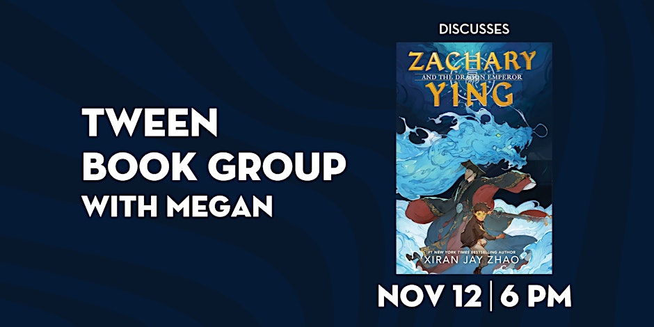 Greenlight’s Tween Book Group, hosted by Megan, invites kids ages 9–12 to enjoy pizza and discuss Zachary Ying and the Dragon Emperor by Xiran Jay Zhao.