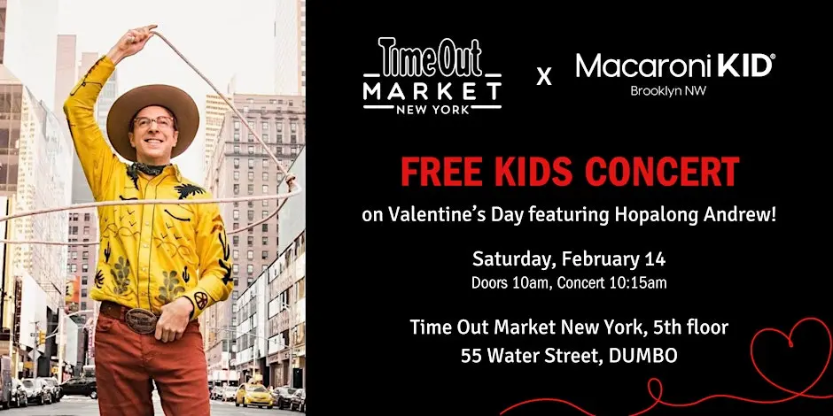 Updated: February 9, 2026. Main Image: Hopalong Andrew Valentine’s Day Concert at Time Out Market in DUMBO.