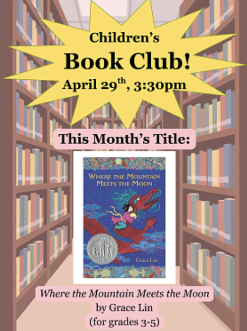Join the Greenpoint Library and Environmental Education Center for a kid’s book club! Participants will discuss the title for the month and do some fun activities related to the book. This book club is for kids in grades 3-5. Registration is encouraged. The plan is to meet in the rooftop garden, weather permitting! This month’s title is: Where the Mountain Meets the Moon by Grace Lin. Copies of the book will be available for checkout at the branch.