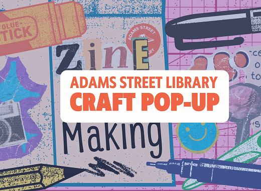 Visit the Adams Street Library and design your own zine using our art and collage materials. We’ll even make a copy of it to add to our Adams Street Zine Library! Ages 8 to 108, no registration required.