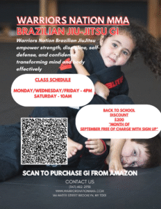 Back-to-school is the best time to give your child the tools to succeed both inside and outside the classroom. At Warriors Nation in DUMBO, our kids’ martial arts program helps students build focus, discipline, and confidence while staying active and having fun. To celebrate the season, we’re offering one FREE month of training for new members! With expert coaches, a safe environment, and a supportive community, your child will learn valuable life skills while making new friends. This special back-to-school offer won’t last long—sign up today and watch your child grow into the best version of themselves.