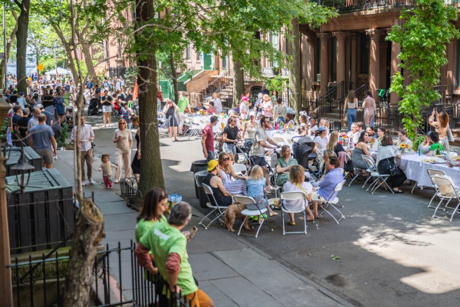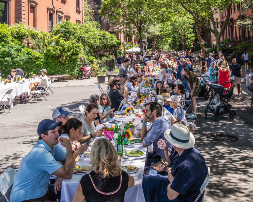 On Saturday, May 17, over 400 Brooklyn Heights neighbors came together to share a potluck meal at one long communal table stretching down a car-free Remsen Street—from Hicks Street all the way to the Promenade. The gathering was organized by the Brooklyn Heights Association (BHA) and sponsored by City Point Brooklyn. Inspired by Paris’s Table d’Aude, a beloved neighborhood tradition, and Chelsea’s Longest Table, the event was free, family-friendly, and open to everyone. Guests brought their own food and drinks, enjoying the afternoon alongside friends, family, coworkers, and new neighbors. It was a vibrant celebration of community and connection in the heart of Brooklyn Heights!
