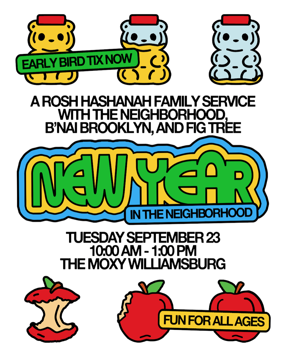Join The Neighborhood, B’nai Brooklyn, and Fig Tree at The Moxy Hotel in Williamsburg, alongside meditation teacher Alison Laichter for a Rosh Hashanah Family Service. Expect kid-friendly meditation, music, storytelling, and spiritual play. Alongside the service, there will be a PJ Library book corner for quiet reading and sensory play. No Hebrew or meditation experience is necessary! Tickets include a pita and falafel lunch with vegan and gluten-free options available (vegetarian, not kosher certified).