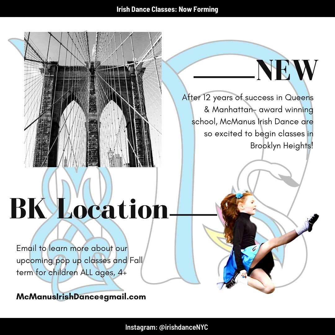 McManus Irish Dance | New location in Brooklyn Heights | Pop-Up Classes NOW AVAILABLE
