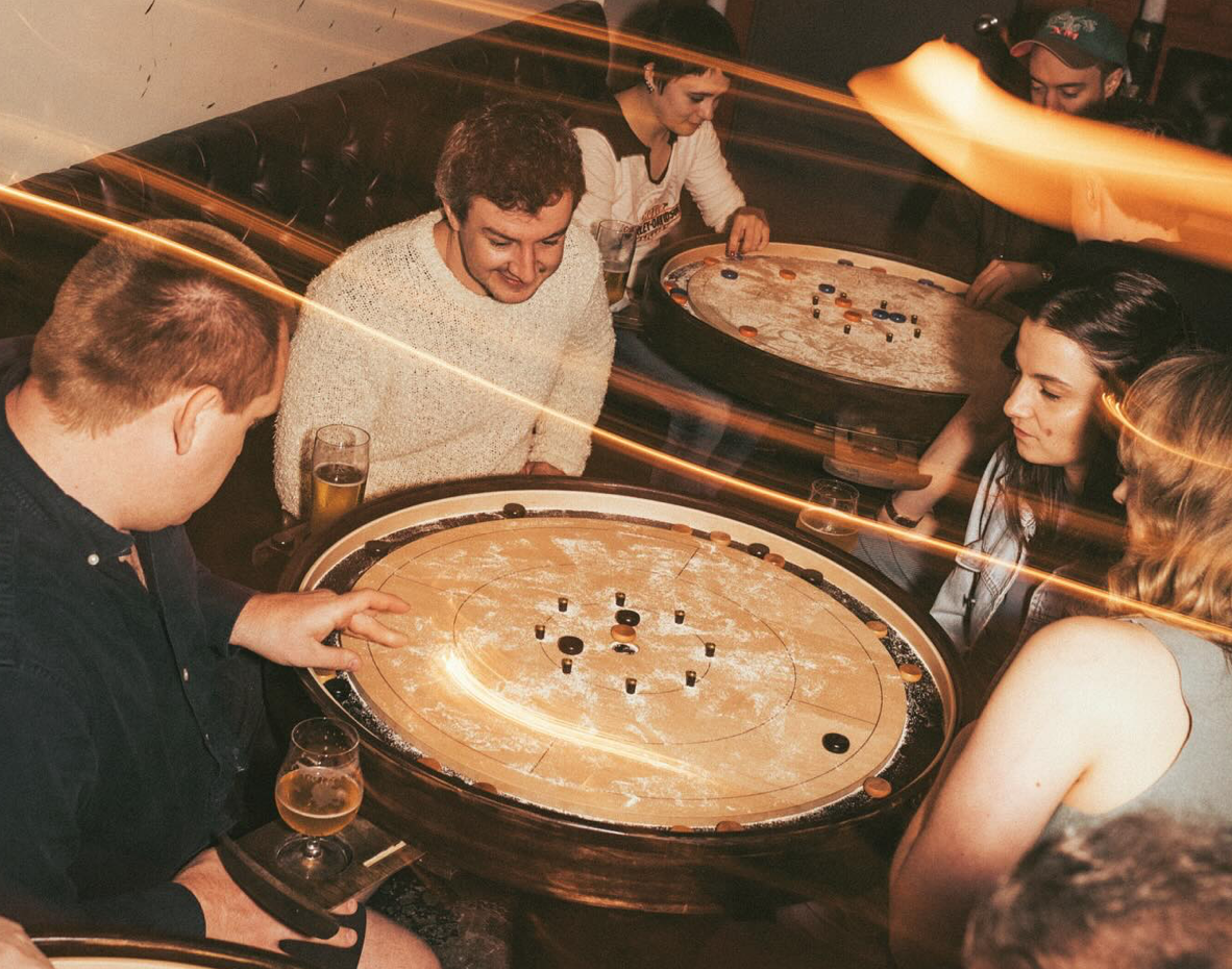A fun new bar has opened at 415 Myrtle where you can drink cold lager and play their house game, crokinole. The game is a mix between shuffleboard and curling, played on a round wooden board, and perfect for a group hang!