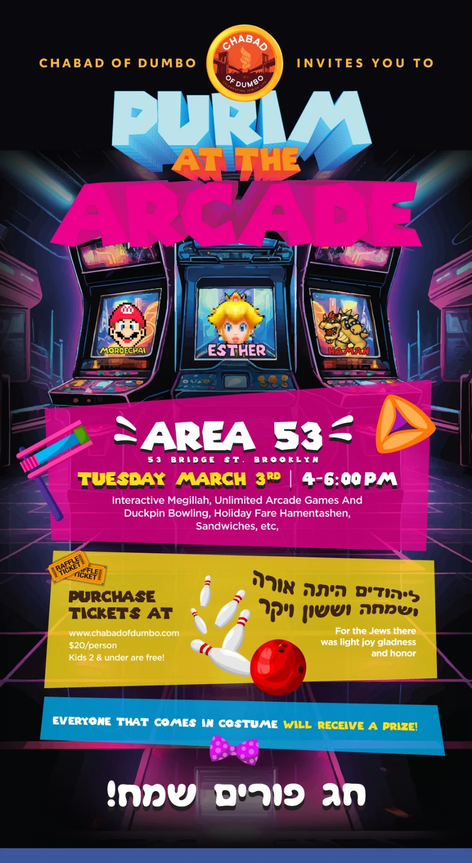 Purim at the Arcade with Chabad of DUMBO | DUMBO