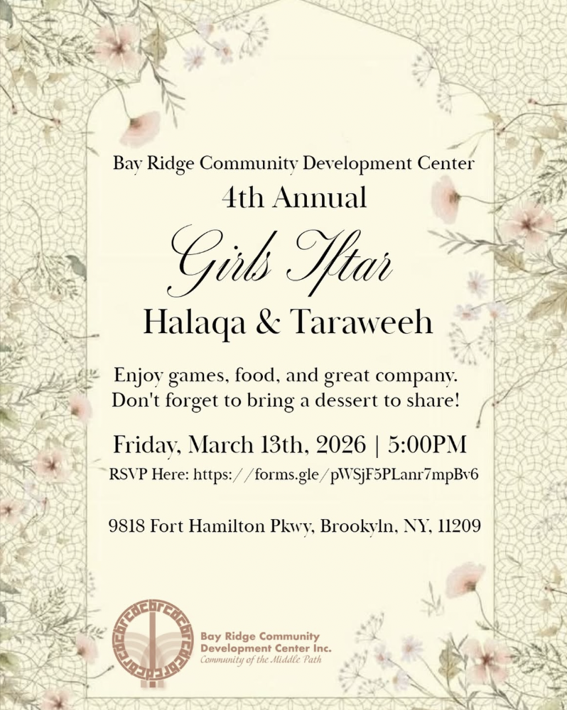 Come to Bay Ridge for BRCDC’s 4th Annual Girls Iftar. There will be a Halaqa, games, food, and more. Bring a dessert to share!