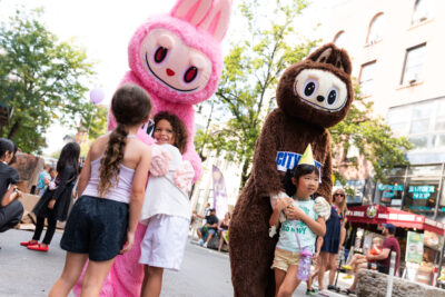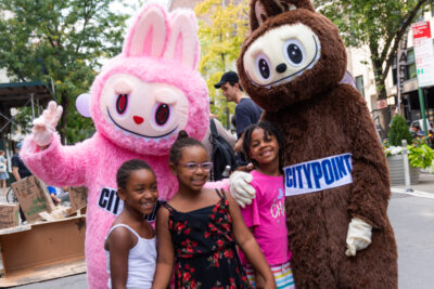 We had so much fun playing with Brooklyn families at our annual Back to School Party during Open Streets on Montague on Sunday, September 14 with 25 free kids activities, performances and more. We had basketball games, arts & crafts, building activities, a dance party, piano lessons, obstacle courses, Pokemon trading, Labubus, an electric  NYC school bus and much more.