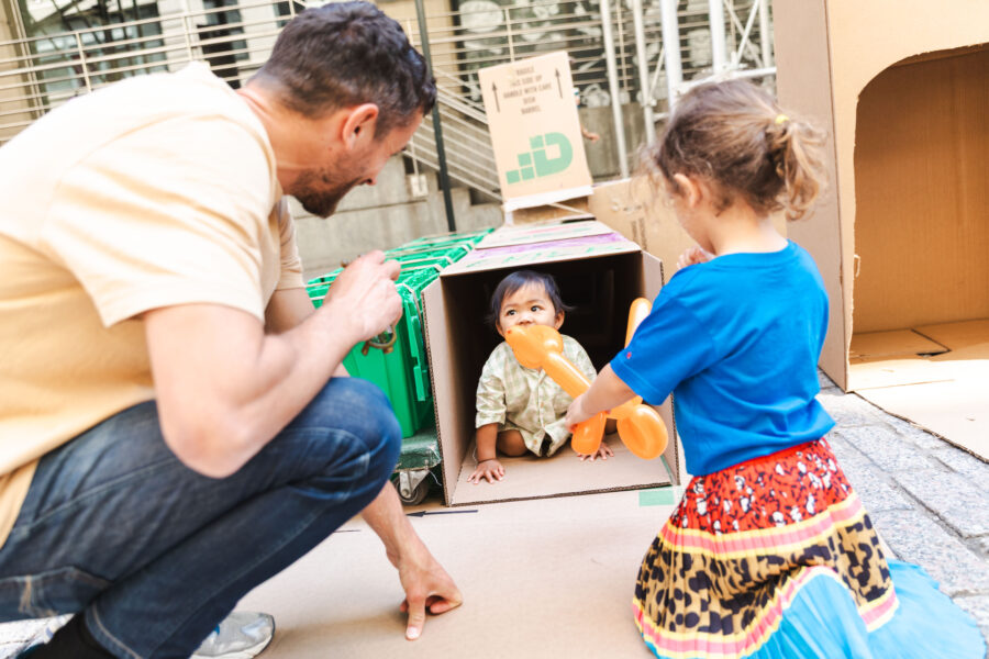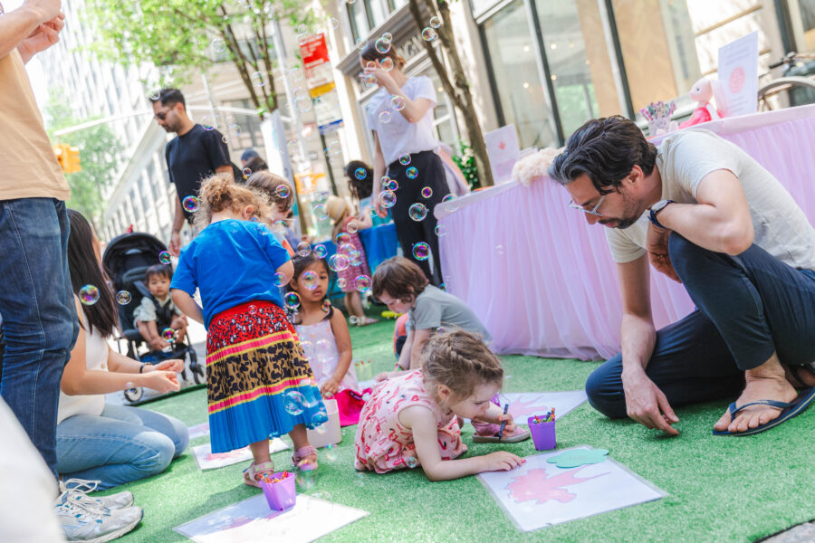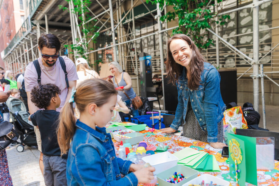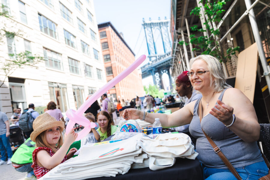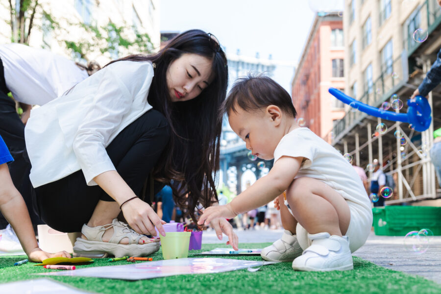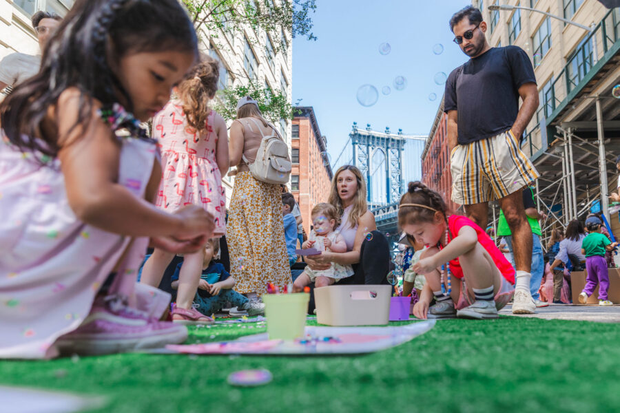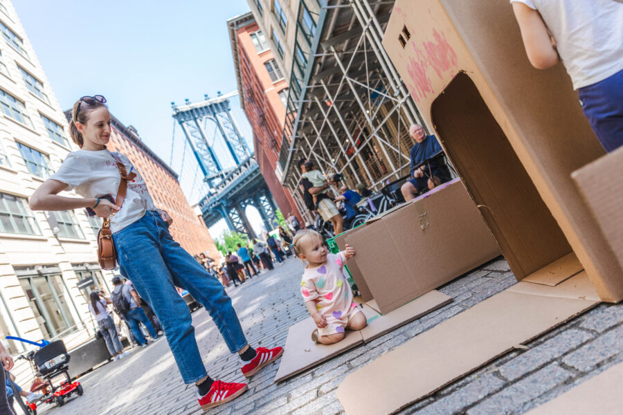 Sunday Family Games on car-free Washington Street are back and a great way to play, meet neighbors and enjoy an epic view! We had a wonderful time at our first Sunday with castle painting, crafts, STEM fun, balloons by Leaf Medical & Dental, some magic and Lego building. The free event series best for ages 1 to 8 will run every Sunday from 11 am to 1 pm until the end of June and again in September and October (weather permitting). Curated by Team DUMBO x Brooklyn Bridge Parents and supported by Leaf Medical & Leaf Dental in DUMBO.