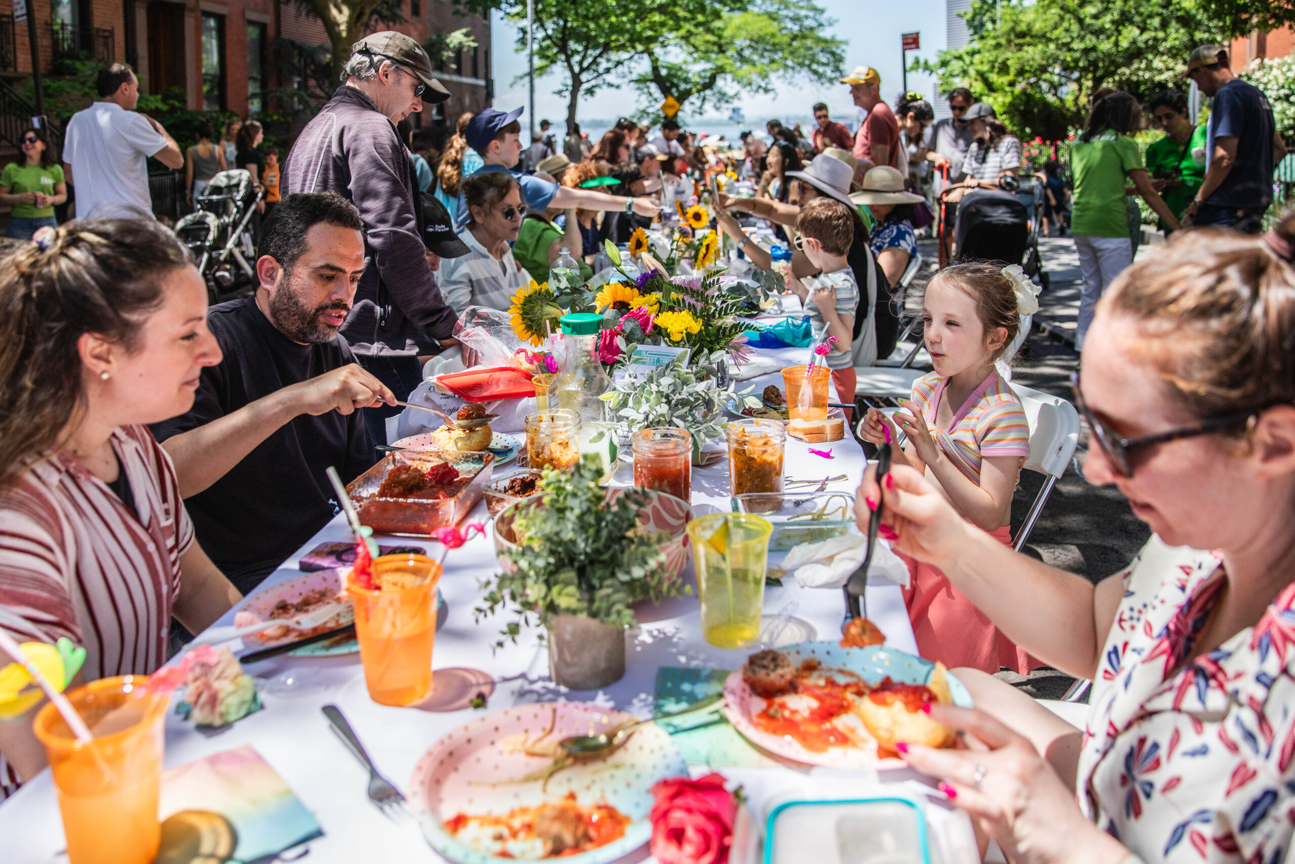 One of Brooklyn Heights’ most beloved new traditions returns — a free, block-long communal potluck stretching down a car-free Remsen Street all the way to the Promenade. Bring your own food, plates, and silverware; the Brooklyn Heights Association provides tables, chairs, and tablecloths. Last year over 400 neighbors showed up to share a meal, meet new faces, and enjoy an afternoon of genuine community. Registration opens May 1 at longesttablebkheights.org. See our impressions from last year.