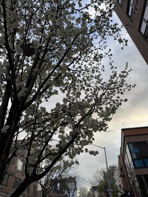 Just south of McCarren, a handful of Williamsburg streets put on a charming neighborhood blossom show each April. You’ll spot fluffy pink trees on several residential blocks—often framing stoops, corner buildings, and small front gardens.